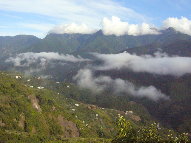 清晨雲海洶湧,群山猶如載浮載沈的小島,揮汗勞動中,太陽手持藏青,將布景染成帶朵朵白雲的湛藍…。午時飯間,則輪雲苞翻騰上場,團團增生,搭配轟天雷鳴,每天出場的行頭都有變化,少則數秒,多則數時,最終均以嘩啦驟雨閉幕。